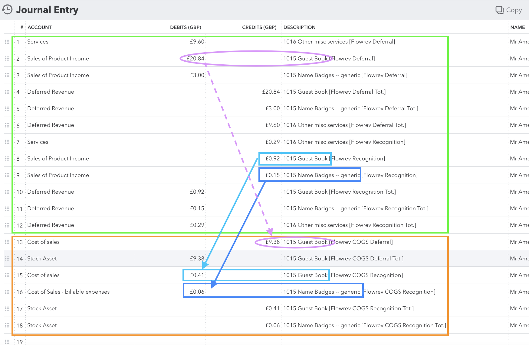 For the second scenario, typically in situations involving multi-element arrangements or when pre-sold item's are delivered across time, for "Inventory" type products you can have Flowrev configured (contact support) to seamlessly spread the COGS associated with that Product/Service item to follow the revenue recognition schedule.
