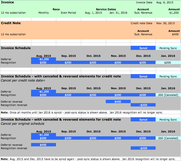 If the invoice or bill lines have recognition schedules, the user can cancel a part of the schedule equaling the amount of the credit note, using the appropriate cancel button on the schedule. When the system asks for confirmation of cancel, select the "I need to cancel due to credit note allocations" option. Upon confirmation, prior syncd elements of the schedule will be reversed, and pending syncd elements canceled, as is detailed at: What happens when I cancel/reverse a schedule?